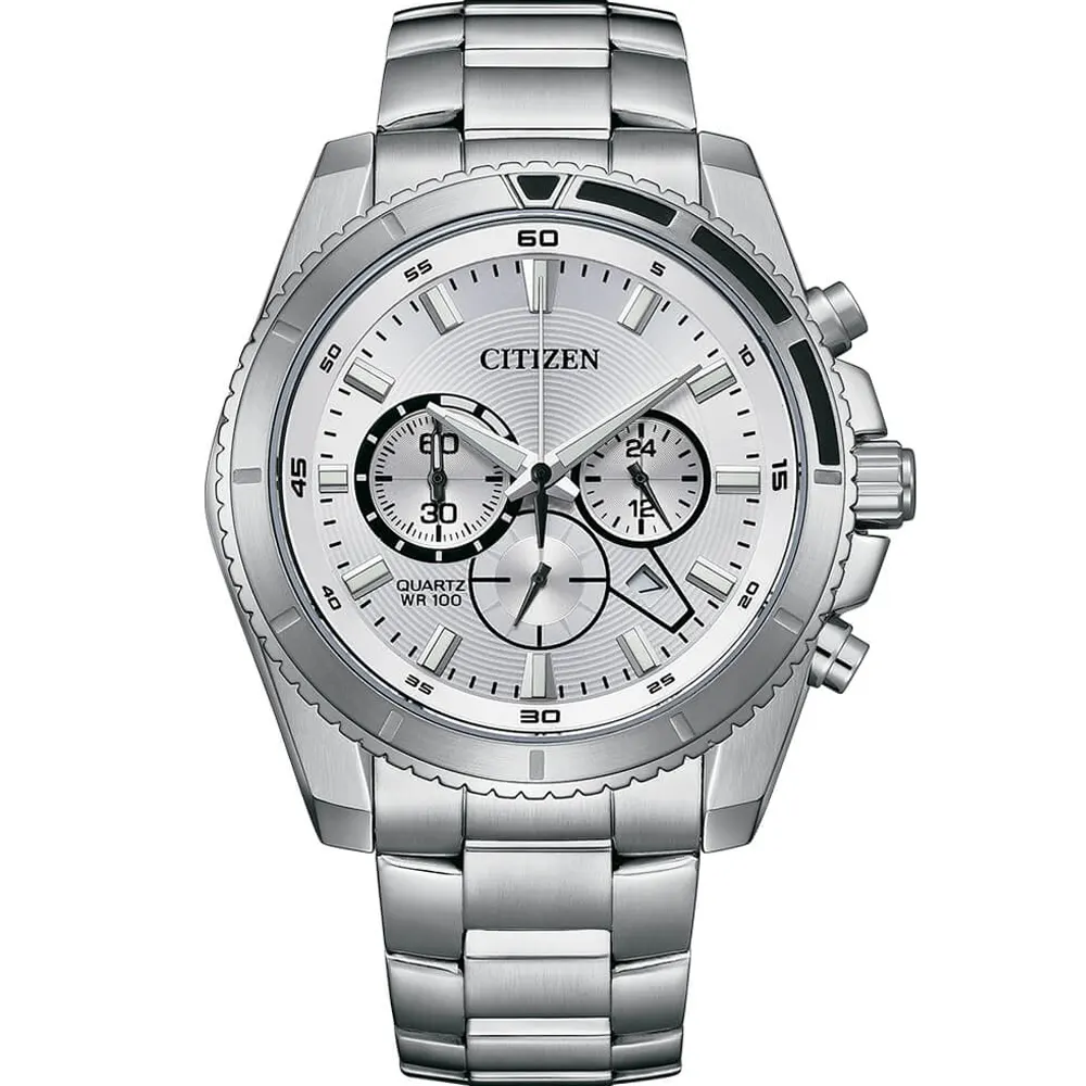 Citizen AN8200-50A Men’s Chronograph Watch – Stainless Steel with White Dial