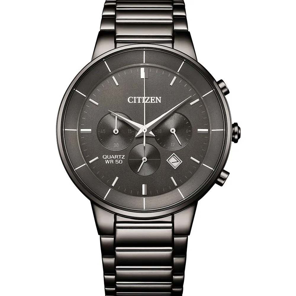 Citizen AN8227-53H Men’s Chronograph Watch – Black Stainless Steel with Grey Dial