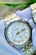 The Citizen BF2018-52A offers the perfect balance of style and functionality. Its two-tone bracelet gives it a versatile look that pairs well with both gold and silver accessories, while the day-date feature ensures everyday practicality. Whether for business attire or evening events, this watch delivers sophistication and durability.