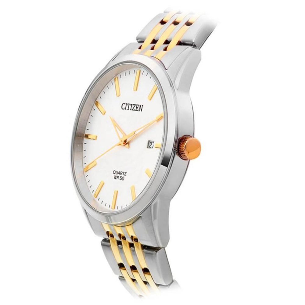 Classic, elegant, and reliable—the Citizen BI5006-81P is a men’s quartz watch designed to complement both formal and casual attire. Featuring a clean white round dial with a date display, a durable silver stainless steel case, and a refined two-tone silver & gold bracelet, this timepiece is perfect for men who value timeless style and everyday practicality.