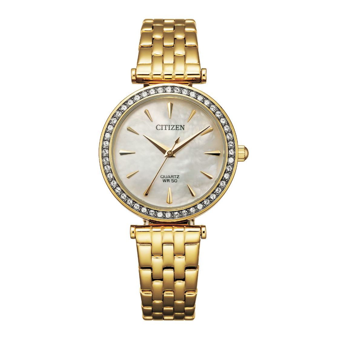 Introducing the Citizen ER0212-50Y Ladies Watch, a sophisticated timepiece that seamlessly combines classic elegance with modern functionality. Perfect for the discerning woman, this watch features a luxurious gold-tone finish and reliable quartz movement, making it an ideal accessory for any occasion.
